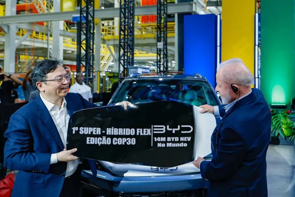 巴西巴伊亚州卡马萨里—10月9日,比亚迪第1400万辆新能源汽车在巴西乘用车工厂正式下线,标志着比亚迪全球化迈入全新阶段。巴西总统卢拉、副总统杰拉尔多·阿尔克明、中国驻巴西大使祝青桥、巴伊亚州州长热罗尼莫·罗德里格斯、比亚迪董事长兼总裁王传福等嘉宾,以及多位政府官员和比亚迪员工代表出席并见证了这...