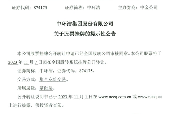 11月7日,中环洁在全国股转系统挂牌公开转让,股份总量931,677,020股,每股面值1元。与环卫领域知名上市公司侨银股份、玉禾田和劲旅环境相似,中环洁也是一家纯环卫服务企业,主要业务是通过特许经营、政府购买服务、PPP等模式,向政府提供环卫清扫保洁、垃圾分类、环境治理等服务,依靠政府支付的服务费生存和发展。 公开资料显示,中环洁...