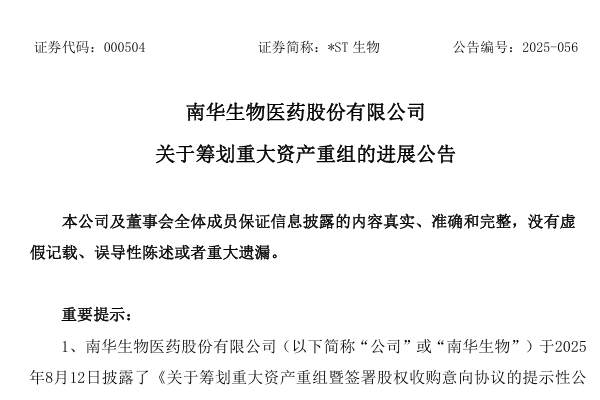 南华生物医药股份有限公司(简称:*ST生物)近日公告称,公司筹划拟以4,862.49 万元自有资金收购湖南金弘再生资源集团有限公司(下称“金弘集团”)持有的娄底金弘新材料有限公司(下称“金弘新材”)43.05%股权;公司同时对金弘新材增资3,000万元,其中2,615.75万元计入标的公...