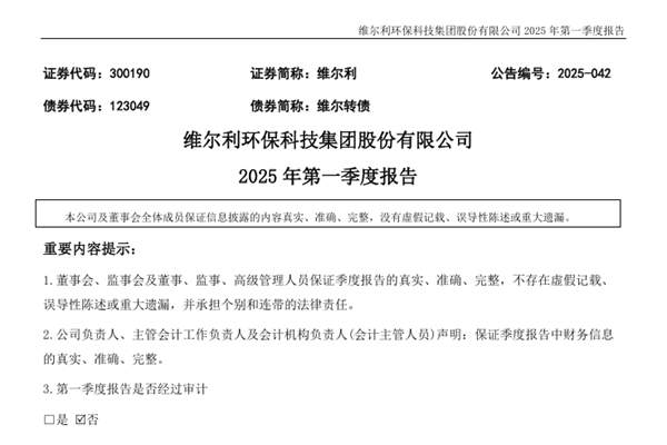 维尔利环保科技集团股份有限公司(简称:维尔利)近日发布《2025年第一季度报告》。报告期内,维尔利实现营业收入为3.49亿元,同比下降9.01%;归母净利润为-5471.99万元,同比下降248.08%;扣非归母净利润为-5584.37万元,同比下降58.66%;基本每股收益-0.07元。图源:维尔利公告 维尔利本报告期内营业利润为...