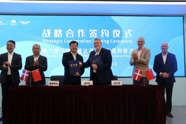 2025年4月16日,丹麦格兰富集团执行副总裁兼水务事业部全球首席执行官Hamed Heyhat先生率20人高管团队莅临浙江嘉源和达水务有限公司考察交流,双方围绕二次供水数字化、智慧水务解决方案等展开深度合作探讨,并再次签署战略合作协议。此次会晤,标志着嘉源和达与全球水泵行业领军企业的合作迈入新阶段。 当天,格兰富水务事业部众多高层...