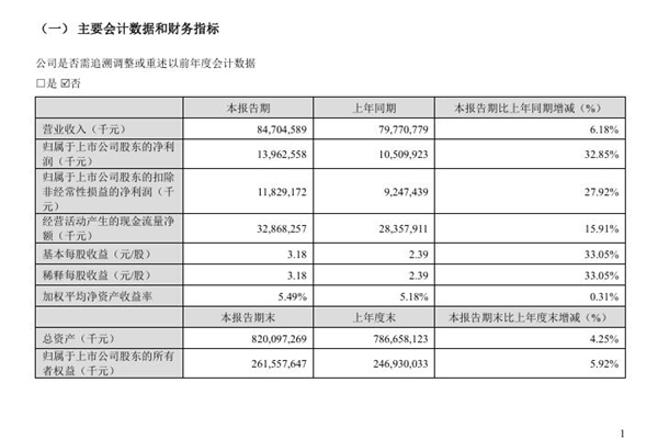 2025年04月15日,宁德时代新能源科技股份有限公司发布《2025 年第一季度报告》。图源:宁德时代公告 公司实现营业收入847.05亿元,同比增长6.18%。实现归属于上市公司股东的净利润139.63亿元,同比增长32.85%。 据宁德时代业绩说明,第一季度电池销量超过120GWh,同比增长超过30%,其中储能销量占比接近20...