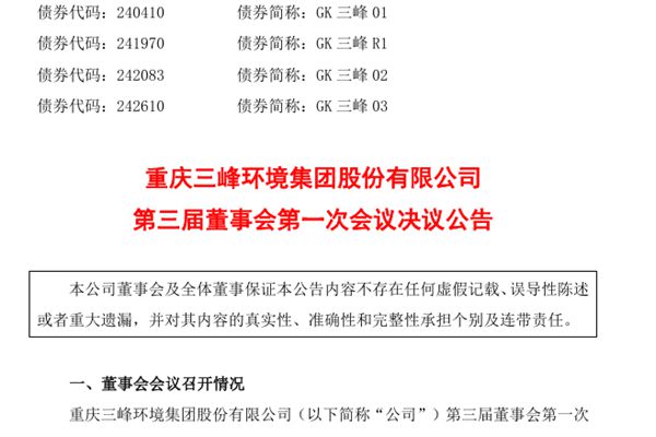 重庆三峰环境集团股份有限公司(简称:三峰环境)3月18日公告称,公司审议通过了《关于选举公司第三届董事会董事长的议案》,决定选举廖高尚先生担任公司第三届董事会董事长;通过《关于选举公司第三届董事会副董事长的议案》,决定选举司景忠先生担任公司第三届董事会副董事长;通过《关于公司第三届董事会各专门委员会人选的议案》,决定在董事会下设战略委...