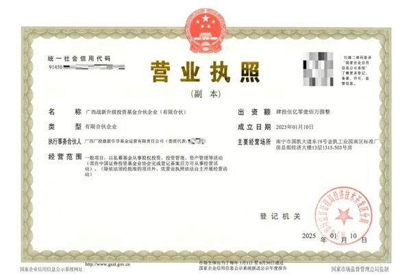 2025年1月10日,由广投集团发起设立的广西战略性新兴产业发展与传统产业转型升级基金(以下简称“广西战新升级基金”)完成工商注册,总规模45亿元,是广西“1+10+N”基金集群中首批获批设立的基金之一。图源:广西投资集团 根据自治区党委、政府工作部署,在自治区国资委、自治区财政厅等相...