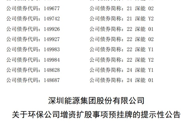 近日,深圳能源发布公告称,深圳能源集团股份有限公司(以下简称:深圳能源)控股子公司深圳能源环保股份有限公司(以下简称:深能环保)拟在深圳联合产权交易所预挂牌以增资扩股方式引入战略投资者,增资后战略投资者持股比例合计不超过 35%。 上述信息仅为信息预披露,目的在于征寻意向方,不构成交易行为。本次增资扩股事项交易对手尚不明确,尚未签署...