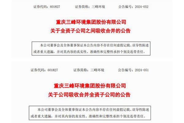 11月2日,垃圾焚烧上市企业重庆三峰环境集团股份有限公司(简称:三峰环境)连发多则公告,宣布两起公司内部吸收合并重大事项。 ①全资子公司之间吸收合并 三峰环境全资子公司重庆三峰卡万塔环境产业有限公司(下称“三峰卡万塔”)计划吸收合并另外两家全资子公司,分别是重庆三峰科技有限公司(下称“三峰科技&...