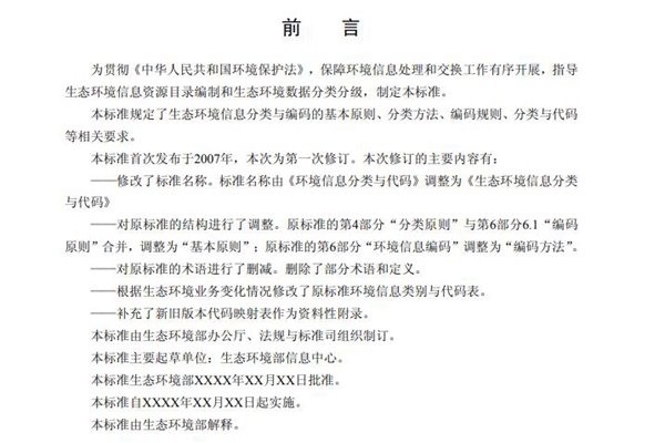 关于公开征求国家生态环境标准《生态环境信息分类与代码(征求意见稿)》意见的通知 为贯彻落实《中共中央 国务院关于全面推进美丽中国建设的意见》,加强数据资源集成共享和综合开发利用,构建美丽中国数字化治理体系,我部组织编制了《生态环境信息分类与代码(征求意见稿)》,现公开征求意见。征求意见稿及其编制说明可登录生态环境部网站“意见...