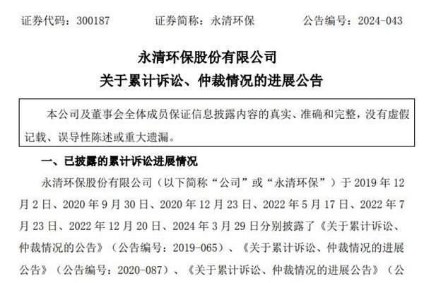 近日,永清环保股份有限公司(简称:永清环保)发布关于累计诉讼、仲裁情况的进展公告。 公告显示,广西蓝德扣除永清环保需支付的工期延误损失150万元后向公司支付了工程款1808.55万元及利息。该案件已完结。永清环保认为,本次诉讼案件预计对公司本期或未来净利润产生积极影响。未来,公司将依法主张自身合法权益,积极采取相关法律措施维护公司和...
