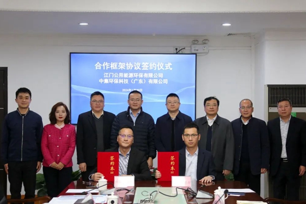 2024年1月30日,江门公用集团属下企业江门公用能源环保有限公司(简称“公用能源环保公司”)与中集环保科技(广东)有限公司(简称“中集环保科技公司”)签订合作框架协议。市国资委党委书记、主任何渝,市国资委党委副书记、副主任李健斌,江门公用集团党委书记、董事长游鑫等领导班子成员,新会区大...