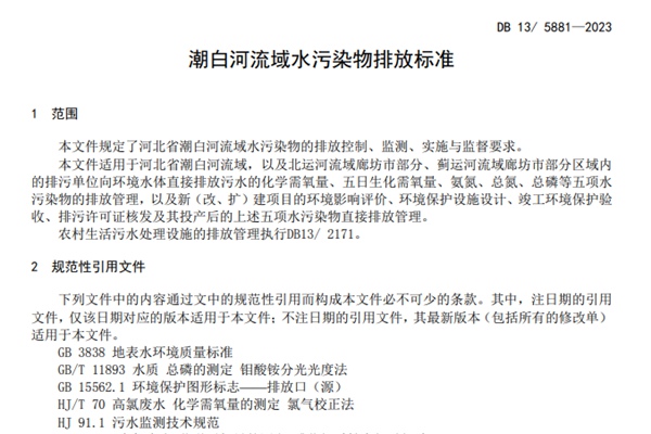 河北省生态环境厅、河北省市场监督管理局于2023年11月15日首次发布《潮白河流域水污染物排放标准》(DB 13/ 5881—2023),该标准将于2024年01月01日起实施。 本文件规定了河北省潮白河流域水污染物的排放控制、监测、实施与监督要求,适用于河北省潮白河流域,以及北运河流域廊坊市部分、蓟运河流域廊坊市部分区...