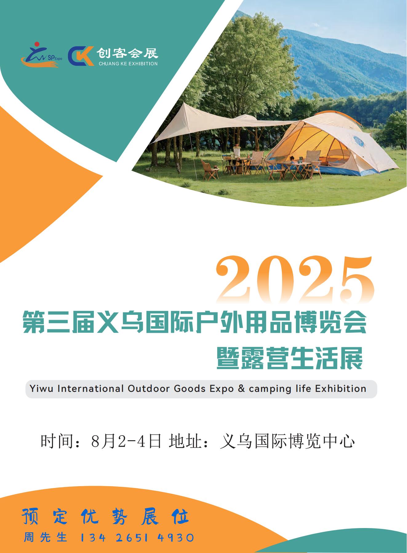 2025第三届义乌国际户外用品博览会暨露营生活展 Yiwu International Outdoor Goods Expo & camping life Exhibition 2025.8.2-4 义乌国际博览中心 同期举办:第三届义乌体育及休闲用品博览会 往届回顾 义乌国际户外用品博览会已成功举办了两届,2024届展会规模...
