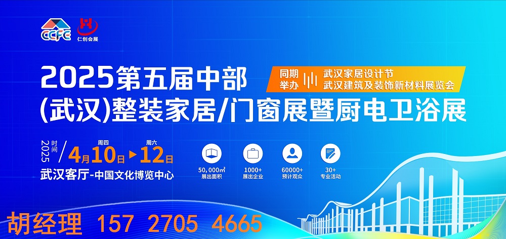2025第五届中部(武汉)整装家居/门窗展暨厨电卫浴窗帘布艺展 武汉家居设计节暨第五届中部(武汉)整装家居/门窗展 厨电卫浴/吊顶装饰/照明展 武汉建筑及装饰新材料展览会 邀请函 时间:2025年4月10日-12日 地点:武汉客厅中国文化博览中心 【展会定位】 第五届武汉家居设计节及武汉整装家居门窗展(以下简称仁创整装展)是以&l...