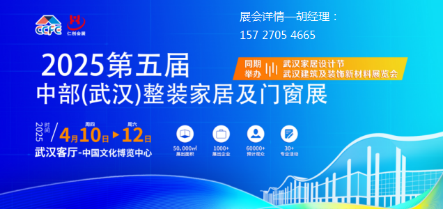 2025第5届中部(武汉)整装家居门窗暨厨电卫浴展 2025年4月10-12日 武汉客厅·中国文化博览中心 【组织单位】 主办单位: 湖北省家具协会 湖北省窗业协会 湖北省室内装饰协会、武汉家具行业协会 武汉仁创会展服务有限公司 协办单位: 湖北省室内设计行业协会 华中建材大市场 咸宁市建材行业商会 英山县门窗行业商会 随...