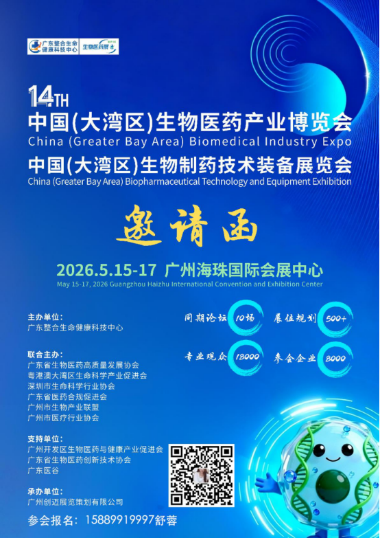 2026中国细胞产业·基因诊断与治疗技术应用博览会 2026 4届广州国际生物医药与生物制药技术装备展览会 2026中国(大湾区)大健康与功能医学应用博览会 展览时间:2026年5月15-17日 展览地点:广州琶洲海珠国际会展中心 组委会秘书处:15889977720舒蓉(微信同号)15889919997舒蓉(微信同号) 展...