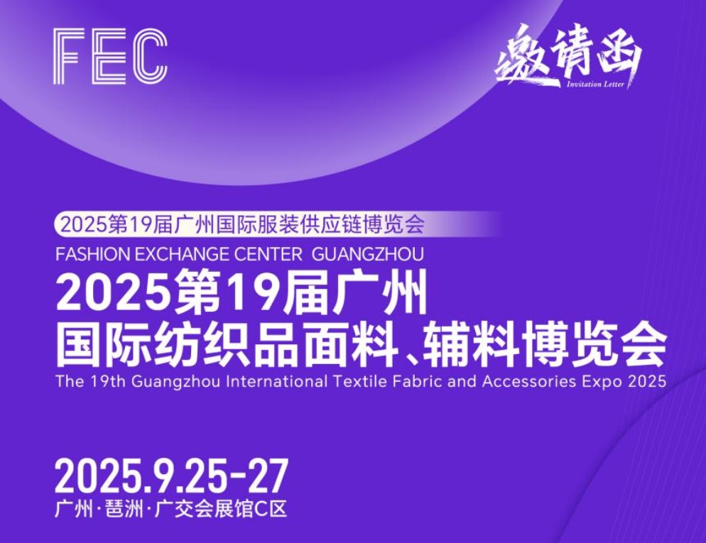 FASHION EXCHANGE CENTER GUANGZHOU FEC 2025 9届广州国际服装供应链博览会 2025The 19th Guangzhouinternational apparel supply chain Expo 2025.9.25-27 广州-琶洲-广交会展馆C区 主办单位: 北京企阳国际展览集团有限公司 ...