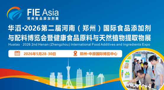 华滔·2026第二届郑州食品添加剂与配料博览会 暨健康食品原料与天然植物提取物展 时间:2026年5月28日-30日 地点:郑州中原国际博览中心 组织单位:华滔国际展览(北京)有限公司 大会网站:http://www.cbieexpo.cn 135-5285-5174 FIE Asia郑州食品添加剂展-食品添加剂与配料产业...