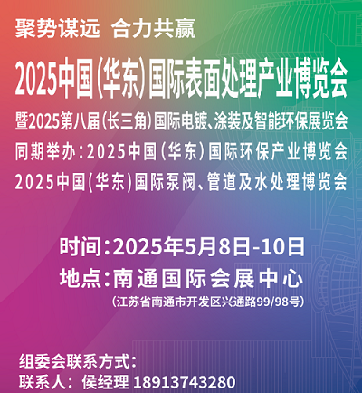 2025中国(华东)国际表面处理产业博览会 暨2025第八届(长三角)国际电镀、涂装及智能环保展览会 同期举办2025环保新材料、新技术、新工艺发展高峰论坛 时间:2025年5月8日-10日 地点:南通国际会展中心 主办单位:华人电镀网 承办单位:无锡昌兴冉乐会展服务有限公司 支持单位:苏州市电镀协会 常州市表面工程协会 湖南省表面工程...