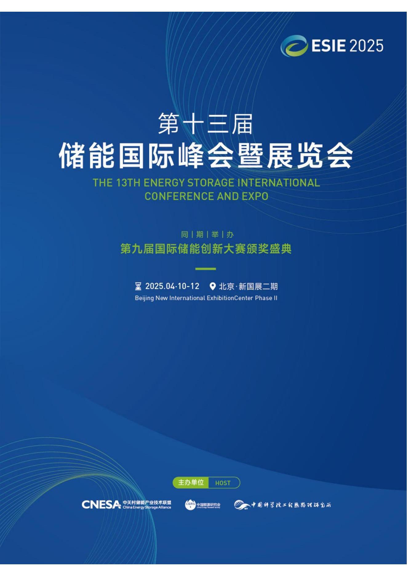 ESIE 2025第十三届储能国际峰会暨展览会 THE 13TH ENERGY STORAGE INTERNATIONAL CONFERENCE AND EXPO 同期举办:第九届国际储能创新大赛颁奖盛典 2025.04.10-12 北京新国展二期 关于ESIE 随着全球能源转型加速,颠覆性技术不断涌现,继风电、光伏、新能源车之后,...