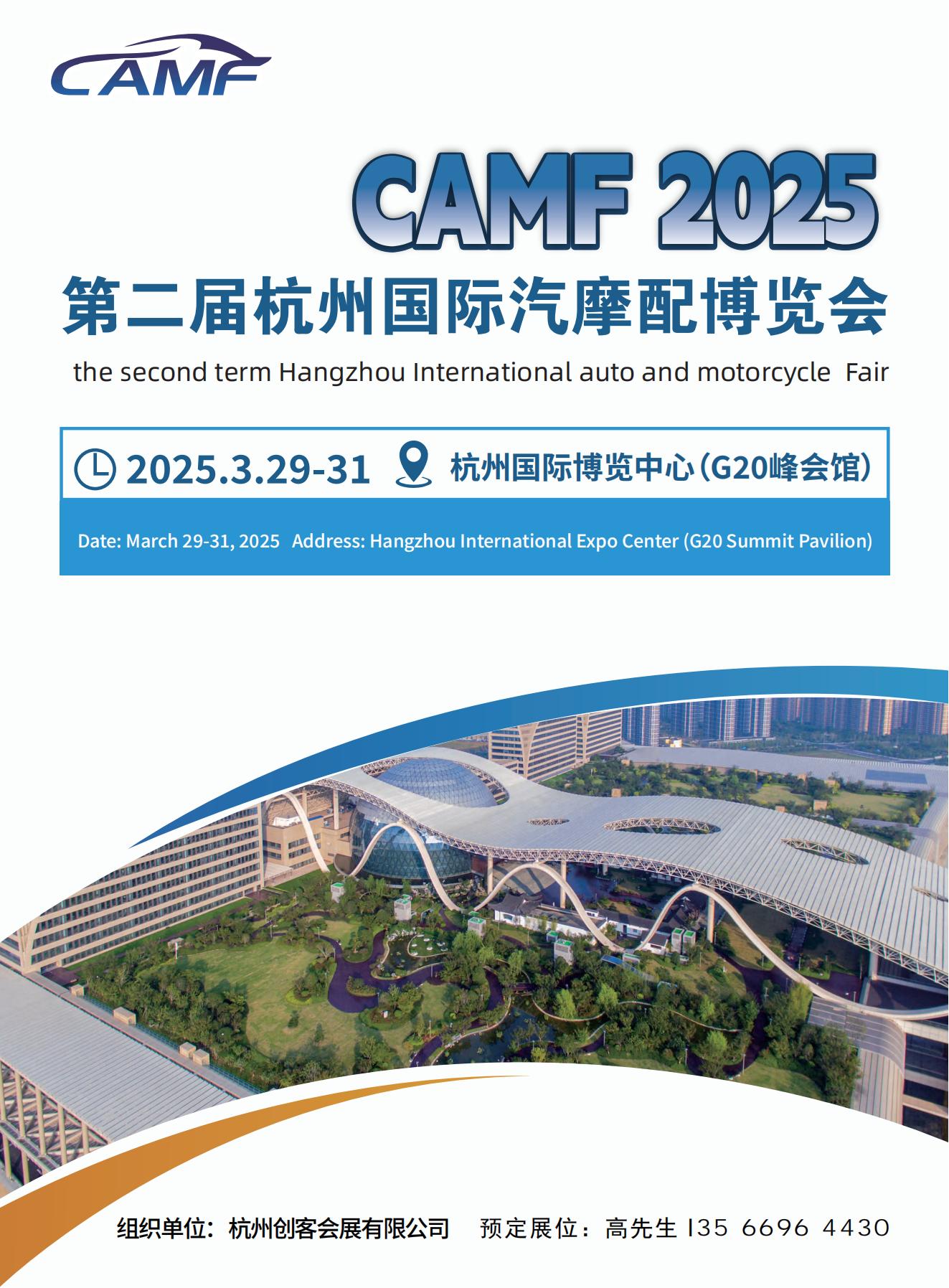 CAMF 2025第二届杭州国际汽摩配博览会 the second term Hangzhou International auto and motorcycle Fair 2025.3.29-31 杭州国际博览中心(G20峰会馆) 项目背景 根据”十四五规划",新时代需加快新兴产业的发展,中国汽车配套市场正在发展成熟,中...