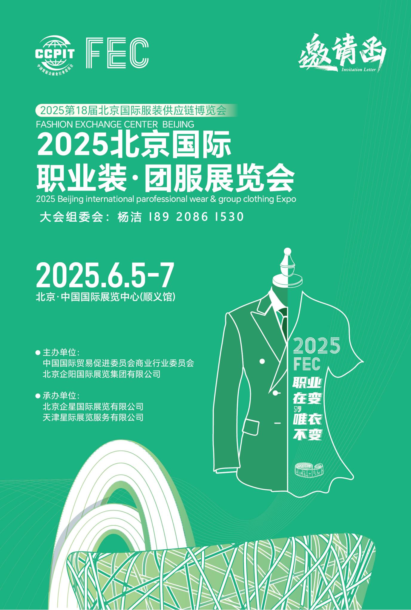 FEC 2025北京国际服装定制展览会 2025Beijing International Clothing Customization Exhibition 展览时间:2025年6月5-7日 展览地点:北京·中国国际展览中心(顺义馆) 主办单位:中国国际贸易促进委员会商业行业委员会 北京企阳国际展览集团有限公司 承办单...