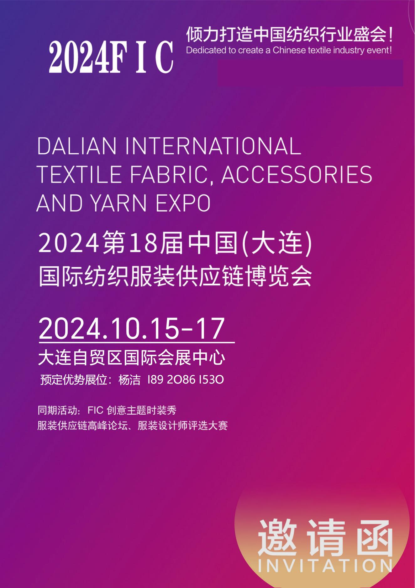 倾力打造中国纺织行业盛会! Dedicated to create a Chinese textile industry event! 2024 8届中国(大连)国际纺织服装供应链博览会 DAL IAN INTERNATIONAL TEXTIL E FABRIC, ACCESSORIES AND YARN EXPO 2024.10.15...