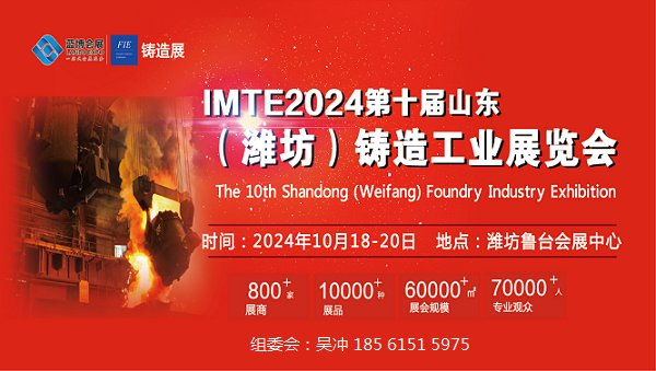 2024第十届山东(潍坊)铸造工业展览会 时间:2024年10月18-20日 地点:潍坊鲁台会展中心 主办单位 山东省机械工业科学技术协会 中国国际商会潍坊商会 协办单位 潍坊市铸造协会 往届回顾 2023第九届山东(潍坊)铸造工业展览会由山东省机械工业科学技术协会、中国国际商会潍坊商会联合主办,潍坊市工业和信息化局、潍坊市工业发展促进...