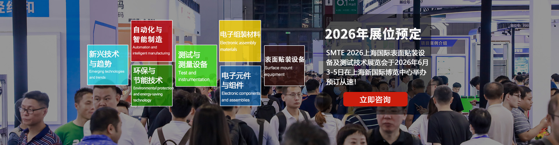 SMTE 2026上海国际表面贴装设备及测试技术展览会 SMTE 2026 Shanghai International Surface Mount Technology and Equipment Exhibition 时间:2026年6月3-5日地点:上海新国际博览中心 参展请联系:尹先生18217255997 智造新纪元,赋能电...