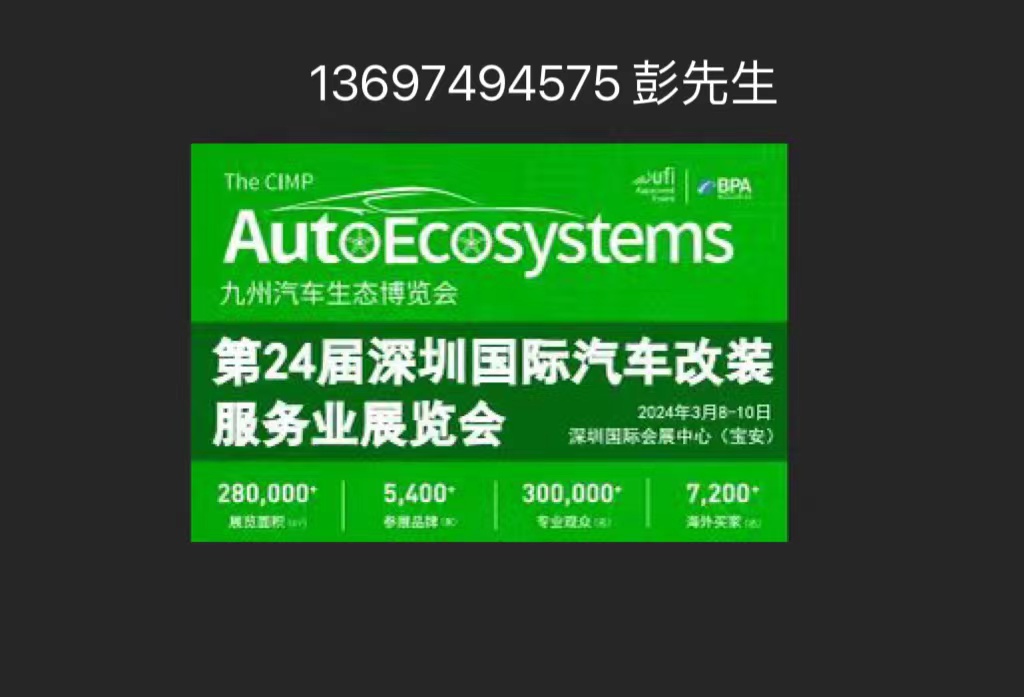 展会名称: 2024年第24届深圳国际汽车改装服务业展览会 组织机构: 中国汽车贸促会 芬兰国家商务促进局 广东九州国际会展传媒科技有限公司 广州市旻顺展览有限公司 展览日期: 2024年3月7日-3月10日 展馆名称: 深圳新会展中心(深圳宝安区福海街道展城路1号) 展会介绍: AAITF 亚洲*大的汽车后市场内销与外贸交易平台 ...