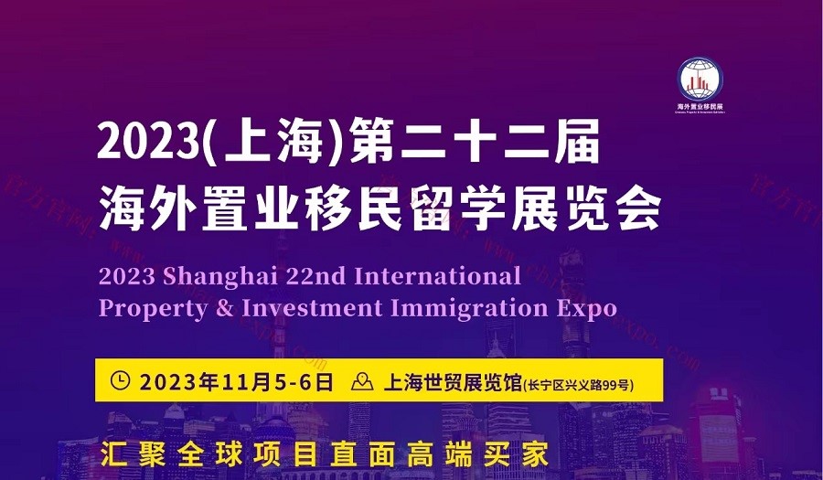 2023上海第二十二届海外置业移民留学展览会 2023Shanghai 22ndInternational Property&Investment Immigration Expo 海外房产| 投资移民 | 出国留学 2023年11月5-6日 上海世贸展览馆 展会概况 伴随着中国经济迅速崛起,海外置业和投资移民已成为中国人的投资...