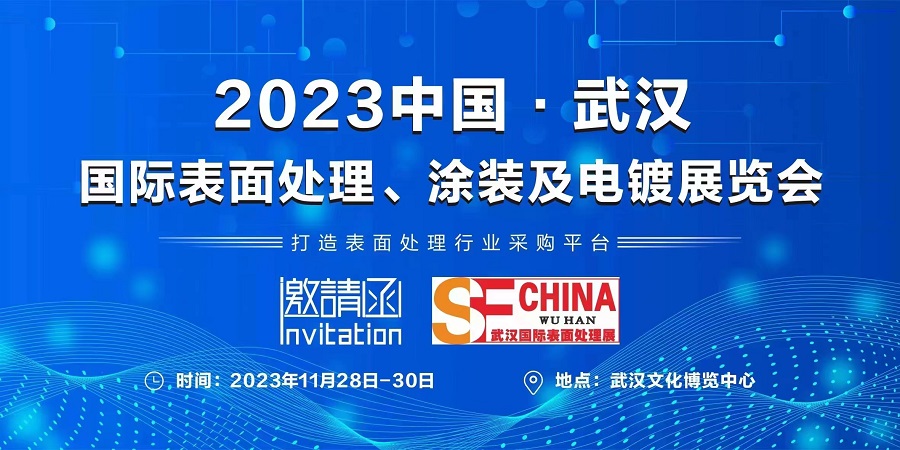 2023湖北(武汉)国际表面处理、涂装及电镀展览会 时间:2023年11月28日-30日 地点:武汉文化博览中心 组织机构-SFwuhan2023 主办单位:湖北省表面工程协会 武汉市表面工程协会 承办单位:重庆汇德展览有限公司 无锡昌兴冉乐会展服务有限公司 展会概述-SFwuhan2023 2023湖北(武汉)国际表面处理、涂装及...
