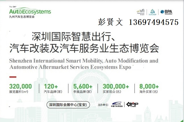 展会名称: 2026深圳国际智慧出行、汽车改装及汽车服务业生态博览会 主办单位: 中国汽车贸促会 广东九州国际会展传媒科技有限公司 协办单位: 广州市旻顺展览有限公司 展览日期: 2026年3月20日-3月23日 展馆名称: 深圳国际会展中心(深圳宝安区福海街道展城路1号) 展会介绍: 九州汽车生态博览会创立于2006年,已经成功举...