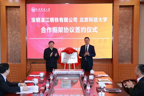 为进一步深化校企合作,推动技术创新和产业升级助力高质量发展,1月9日上午,宝钢湛江钢铁有限公司与北京科技大学在京签署合作框架协议并为联合研发中心揭牌。北科大校长杨仁树、湛江钢铁党委书记、董事长田国兵等校企领导共同出席了签约仪式并做交流发言。签约仪式后,中国工程院院士、北科大碳中和创新研究院院长毛新平与田国兵等一行做专题座谈交流。 杨...