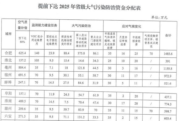1月8日,安徽省生态环境厅发布《安徽省财政厅 安徽省生态环境厅关于提前下达2025年省级大气污染防治资金的通知》,共计下达13335.2万元。 监测能力建设经费,主要用于全省VOCs组分网站点和空气质量国控站点电子围栏项目运维。大气污染防治重点项目经费,主要用于挥发性有机物治理、国二以下非道路移动机械淘汰、重点企业门禁与生态环境部门...