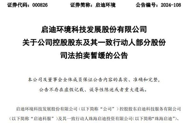 日前,启迪环境科技发展股份有限公司(简称:启迪环境)控股股东启迪科技服务有限公司及其一致行动人珠海启迪投资有限公司、珠海启迪绿源投资有限公司分别持有公司 500,000 股、82,818,938股、24,189,197 股股份将在京东司法拍卖网络平台进行公开拍卖。 11月29日,启迪环境公告称,公司通过京东司法拍卖网络平台查询获悉此...