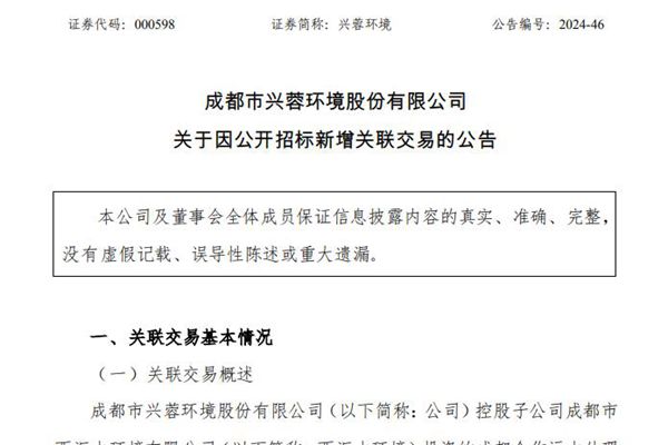 成都市兴蓉环境股份有限公司(简称:兴蓉环境)近日公告称,公司控股子公司成都市西汇水环境有限公司(以下简称:西汇水环境)投资的成都合作污水处理厂四期项目对配套管网施工实施了公开招标,经评审和公示,确定成都环境工程建设有限公司(以下简称:环境建设公司)为中标人,中标含税价为 14,506.19 万元(不含税额为 13,308.44 万元)...