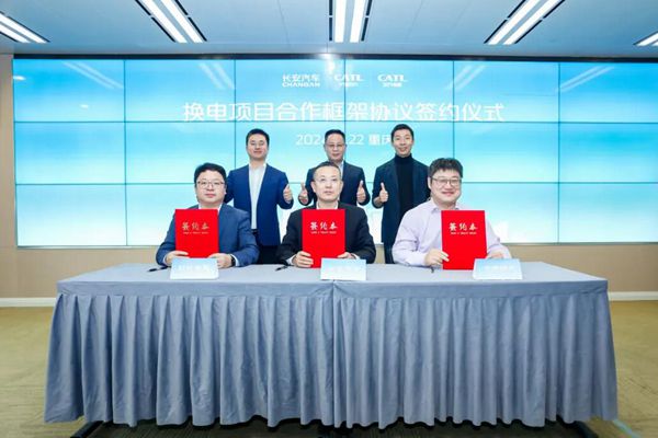 11月22日,长安汽车、宁德时代、时代电服在重庆举行换电项目三方合作协议签约仪式,宣布新一代巧克力换电首款车型长安欧尚520和新一代巧克力换电站同时进入量产上市阶段。 同日,时代电服与中石化重庆分公司签订战略合作框架协议,双方将在换电站建设运营、市场拓展、品牌推广方面深度合作。 会后,重庆出租车及网约车企业代表现场观看了换电过程,...