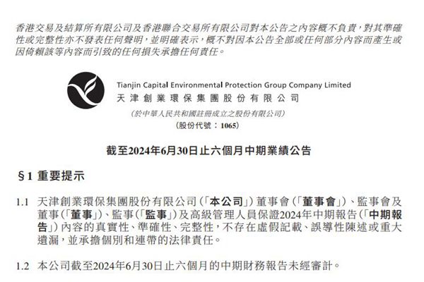 天津创业环保集团股份有限公司(简称:天津创业环保股份)近日发布《截至2024年6月30日止六个月中期业绩公告》,上半年共实现营业收入22.18亿元人民币,同比增加5.18%;归属于本公司股东的净利润4.22亿元人民币,同比减少3.64%;归属于本公司股东的扣除非经常性损益的净利润3.82亿元人民币,同比减少4.89%;基本每股收益人民...