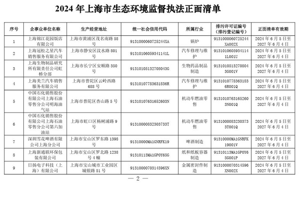 上海市生态环境局关于印发《2024年上海市生态环境监督执法正面清单》的通知 沪环执法〔2024〕100号 各区生态环境局、上海自贸区临港新片区管委会、上海自贸区管委会保税区管理局、浦东新区城管执法局,市环境执法总队: 为贯彻落实《上海市生态环境监督执法正面清单管理办法》(沪环规〔2021〕12号)有关要求,我局编制了《2024年上海市...
