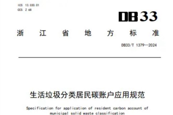 5月20日,由浙江省住房和城乡建设厅提出,衢州市柯城区人民政府牵头编制的全国首个生活垃圾分类居民碳账户地方标准《生活垃圾分类居民碳账户应用规范》(DB33/T 1379—2024)正式实施。 该标准基于城镇生活垃圾智能分类投放模式与统收模式,建立了一套科学的居民生活垃圾四分分类(易腐垃圾、其他垃圾、可回收物和有害垃圾)碳...
