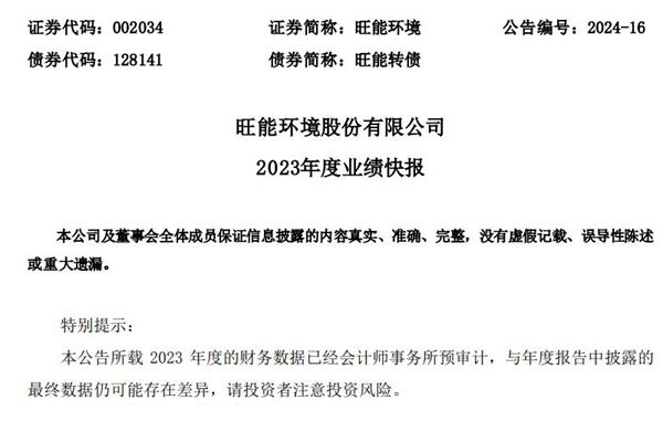 旺能环境3月27日晚间发布2023年度业绩快报,实现营业收入约31.95亿元,同比减少4.61%;归属于上市公司股东的净利润约5.9亿元,同比减少18.19%;基本每股收益1.37元,同比减少18.93%。 截止报告期末,旺能环境有26个垃圾焚烧发电项目和2个餐厨项目已符合财政部、国家 发展改革委、国家能源局等主管部门相关规定要求并...