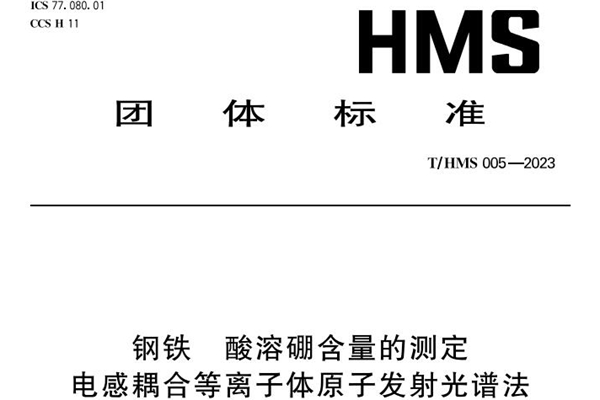 团体标准《钢铁 酸溶硼含量的测定 电感耦合等离子体原子发射光谱法》(T/HMS 005- 2023)发布,自2023年11月1日起实施。...