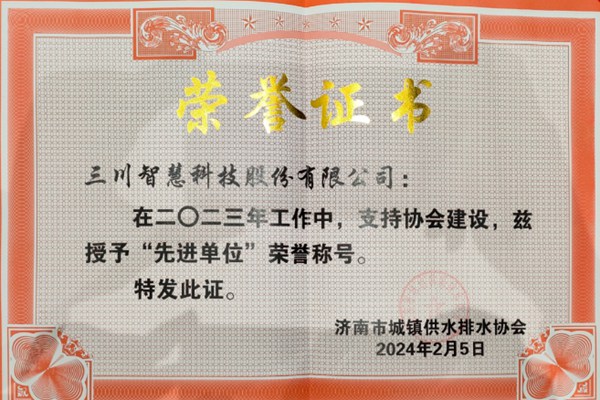 2024年2月27日,济南市城镇供水排水协会第四届五次理事会在山东.济南隆重召开,来自各地100多名代表参加了会议。为鼓励先进,树立典型,推动各项工作再上新水平,济南市城镇供水排水协会对先进单位和个人进行了表彰。三川智慧荣获“2023年度先进单位”荣誉称号,三川智慧销售副总监熊辉斌被评为“先进个人&...
