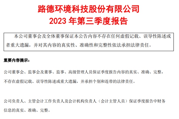 2023年10月27日,路德环境科技股份有限公司(下称“路德环境”)公布2023年第三季度报告。经营概况↓ 2023年三季度:营业收入1.07亿元,较上年同期增长34.13%;归属于上市公司股东的净利润1472.72万元,同比增长201.28%;归属于上市公司股东的扣除非经常性损益的净利润1274....