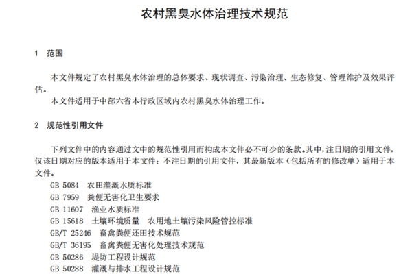 2023年12月14日,河南省《农村黑臭水体治理技术规范》(DB41/T 60002-2023)将正式施行。本文件由河南省生态环境厅提出并归口。 本文件规定了农村黑臭水体治理的总体要求、现状调查、污染治理、生态修复、管理维护及效果评估,适用于中部六省本行政区域内农村黑臭水体治理工作。 ...