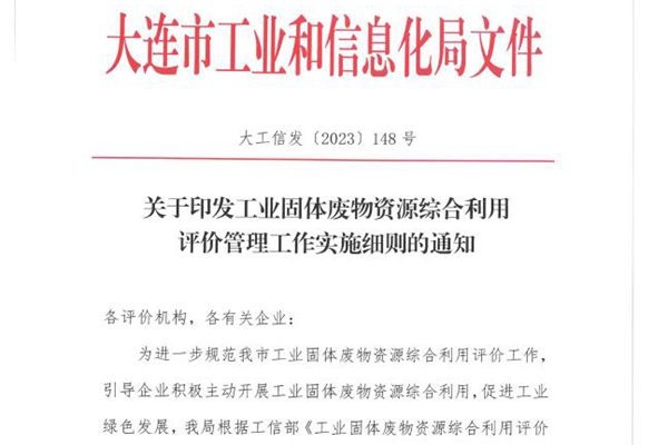 为进一步规范工业固体废物资源综合利用评价工作,引导企业积极主动开展工业固体废物资源综合利用,促进工业绿色发展,大连工信局制定了《工业固体废物资源综合利用评价管理工作实施细则》,面向大连市境内开展工业固体废物资源综合利用且产品符合国家工信部《国家工业固体废物资源综合利用产品目录》的企业,评价期原则上为企业提出申请之日起一年以内(可按月、...