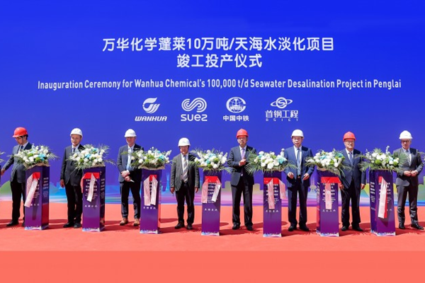由苏伊士为全球化工品牌20强之一的万华化学集团设计建造的标志性海水淡化厂,在山东烟台万华化学蓬莱工业园正式竣工投产。该项目整体规划建设规模30万立方米/天,分三期建设。当地政府部门代表,与万华化学集团、中铁上海工程局集团、首钢工程公司及苏伊士集团等合作伙伴为项目剪彩,共同见证这一中法企业在水资源领域的重要合作成果。 万华化学集团董事...