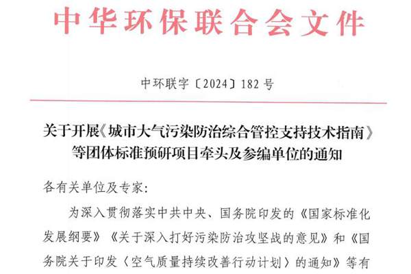 关于开展《城市大气污染防治综合管控支持技术指南》等团体标准预研项目牵头及参编单位的通知 各有关单位及专家: 为深入贯彻落实中共中央、国务院印发的《国家标准化发展纲要》《关于深入打好污染防治攻坚战的意见》和《国务院关于印发〈空气质量持续改善行动计划〉的通知》等有关精神,以更高标准推进城市大气污染防治“一市一策&rdquo...