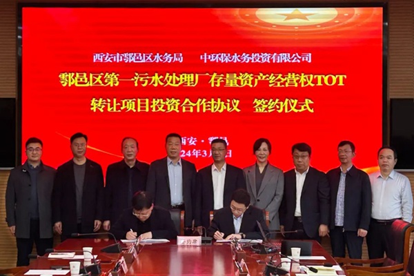 2024年3月1日,中环保水务投资有限公司与西安市鄠邑区水务局举行鄠邑区第一污水处理厂存量资产经营权TOT转让项目投资合作协议签约仪式。鄠邑区区委常委、副区长杨战海、中环保水务投资有限公司党委书记、总经理彭云清出席本次签约仪式,共同见证这一历史性时刻。 签约仪式上,彭云清总经理和杨战海副区长分别致辞,表达了双方对合作的信心与期待。彭...
