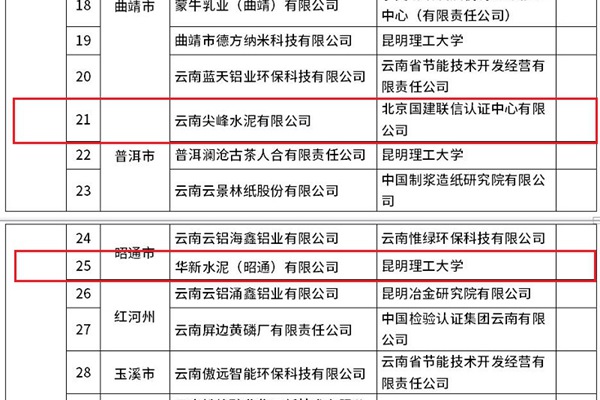 1月22日,云南省工信厅公布2023年度省级以上绿色制造名单,共计绿色工厂33家(其中国家级31家)、绿色园区1家(国家级),绿色供应链管理企业1家(省级)。其中,昆明崇德水泥有限公司、云南尖峰水泥有限公司、华新水泥(昭通)有限公司、丽江古城西南水泥有限公司获评云南省2023年度国家级绿色工厂。 原文如下↓ 云南省工业和...