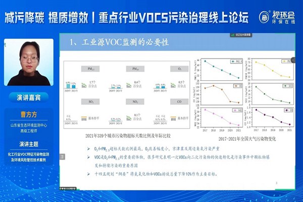 “2017至2021年,我国城市主要大气污染物中,O3和PM2.5超标天数比例最高,而O3改善幅度小,京津冀及周边臭氧污染尤其严重。与此同时,很多研究表明,一次VOCs向二次污染物的快速转化是污染事件中颗粒物爆发和持续污染的重要原因。”在2023视环会-秋季展期间,山东省生态环境监测中心高级工程师曹方方出席&l...